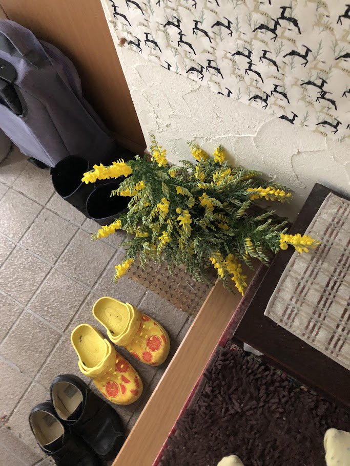 せめて、切り落とした姫エニシダの枝は、玄関に飾った。ジャスミンも切ったつるをまだ片づけられないで、そのへんに転がしてるのを、明日少し拾って来て、花瓶にさそうかな。雨だから、まだ枯れてはいないだろうし、いい香りがするだろうし。