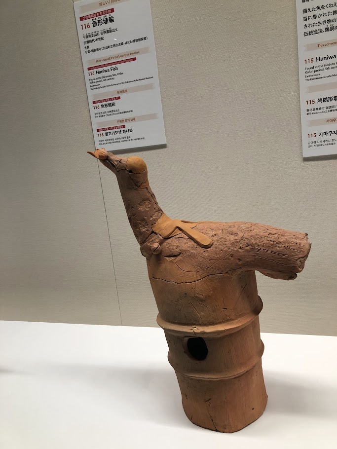眠くなってきたからひと眠りするか。写真は昨日のはにわ展で撮った、帽子をかぶる男性とわかりにくいですけど、魚をくわえてる鳥です。