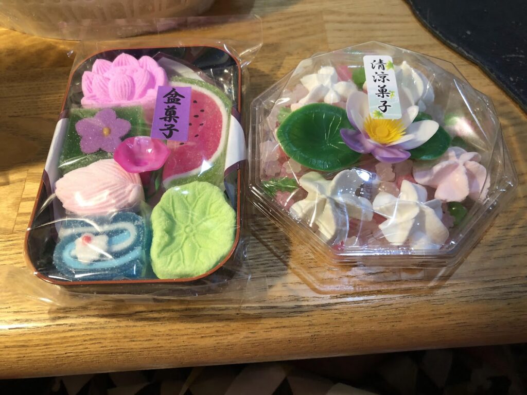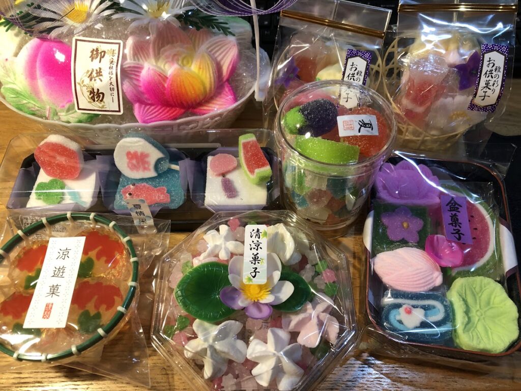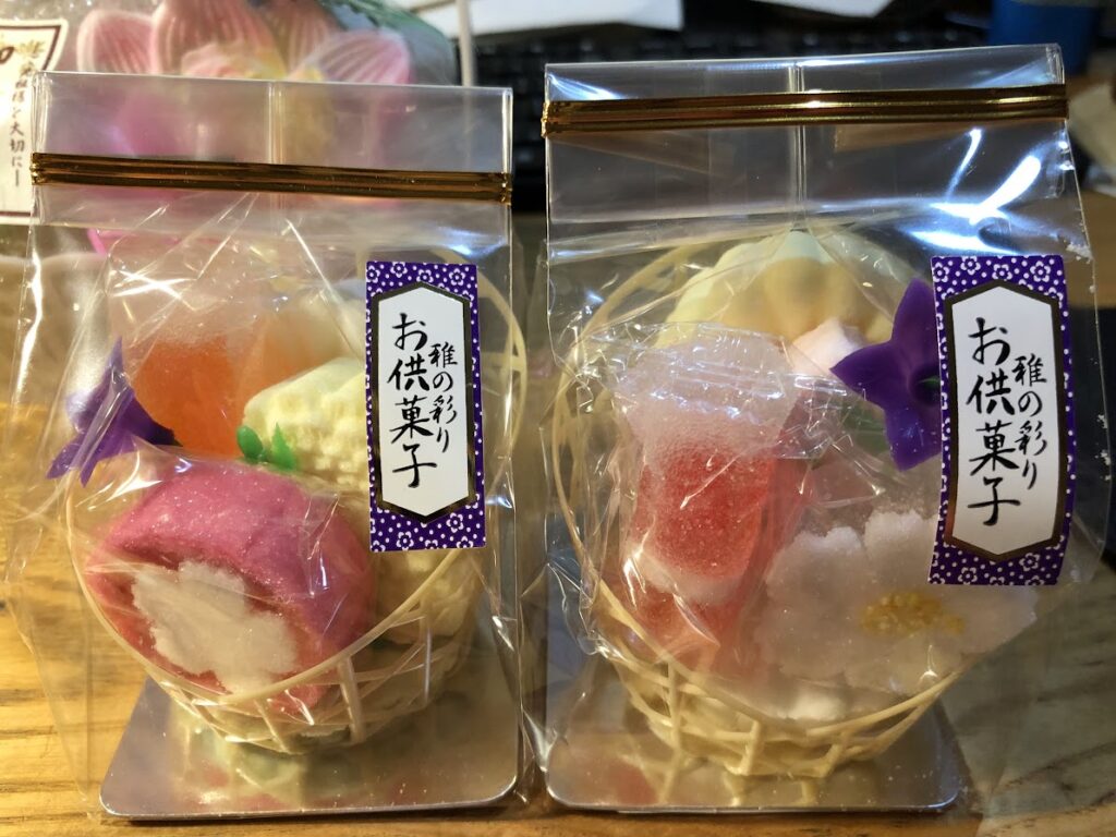 くやしいから、うっかり買いまくってしまったお菓子をご紹介。でかい落雁だと始末に困るし面白くないから、かわいい小さいのを探した結果がこの始末。ろくに値段も確認しなかった私もバカだし、たしかにそれぞれ手がこんではいますけれど、やっぱりさ、ちょっと高いと思いません? もちろん福岡のデパートに行けば、これ以上に手のこんだ高級なお盆用のお菓子がわんさとあるのは知ってるんですけど(昔はそういうのも買ってたんだよなあ、個人的なバブル期には)。