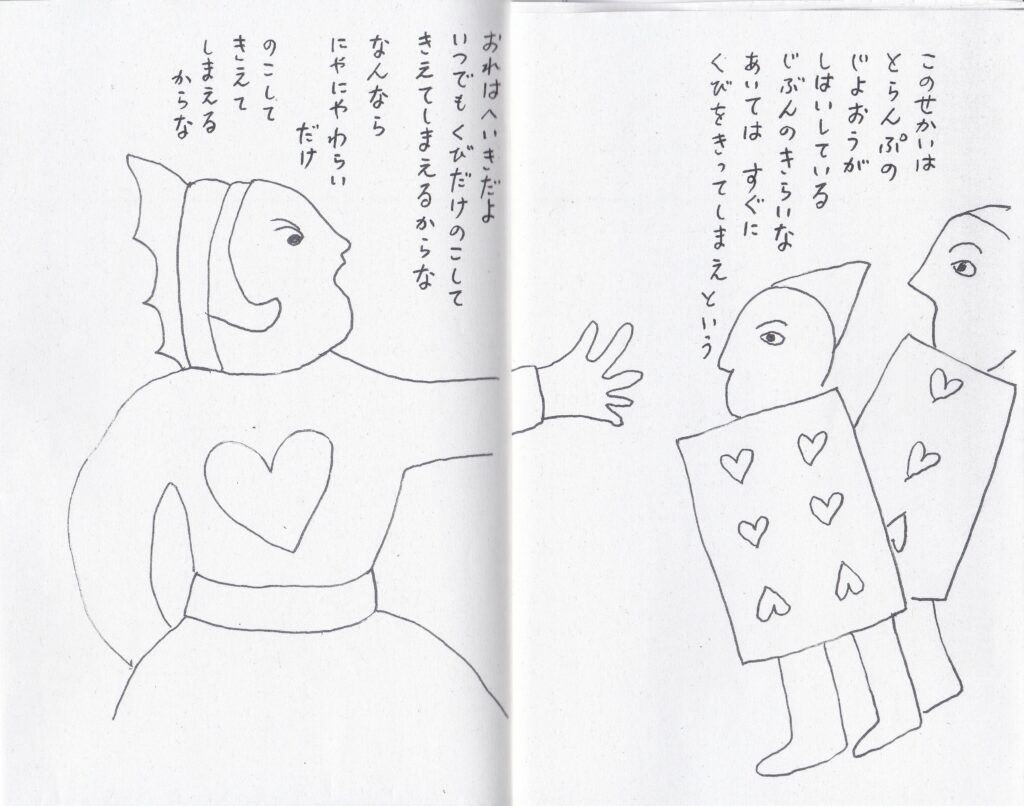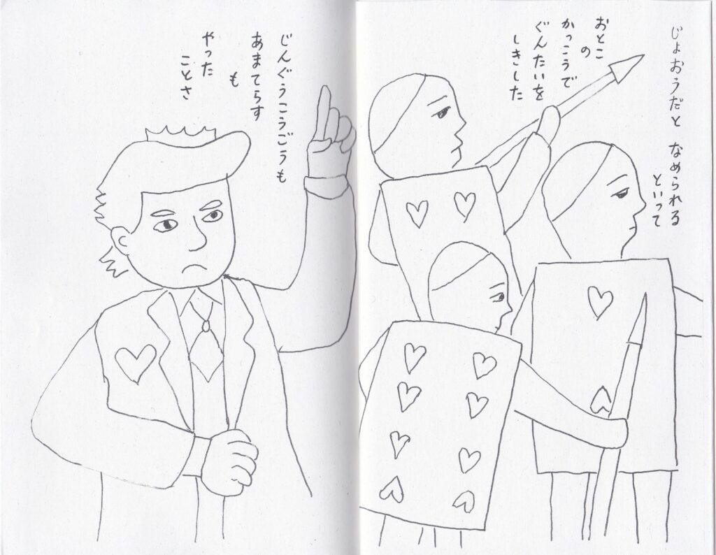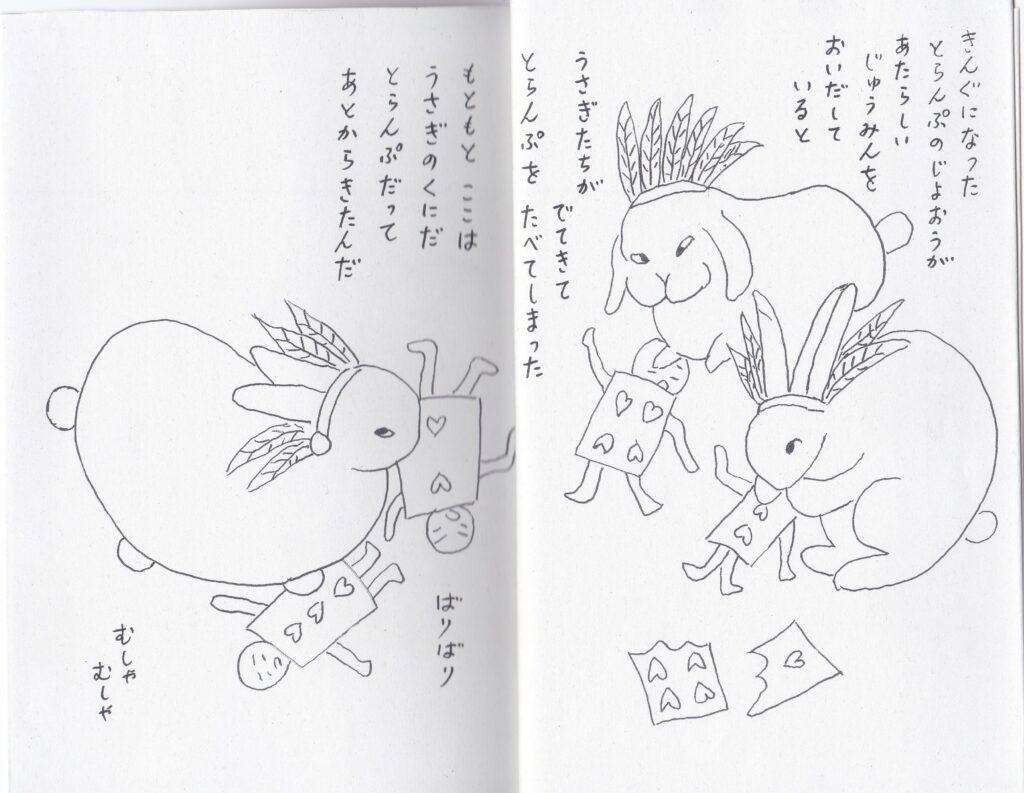 黄表紙は「現代の風俗」を入れないといけないので、これはトランプ大統領の移民政策をネタにしています。最後に出てくるウサギたちは、頭に羽飾りをつけていて、アメリカの先住民っぽい。目つきが悪いのが、かわいいでしょ。