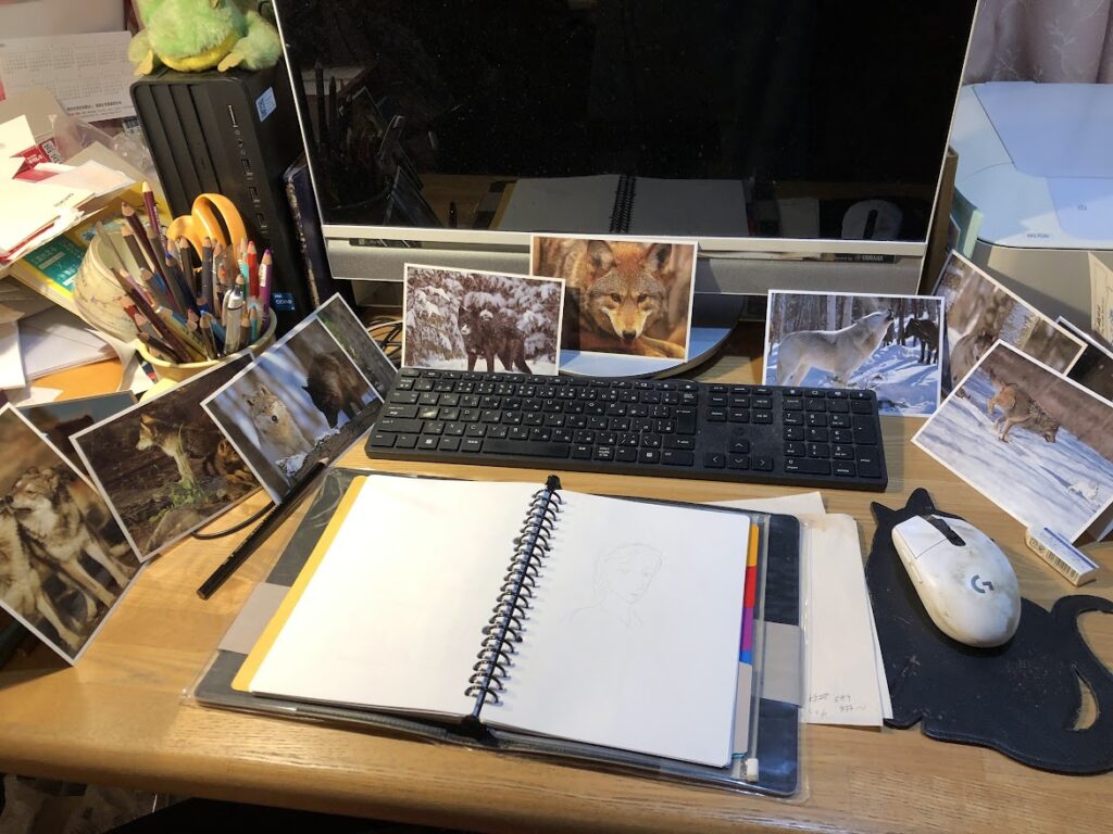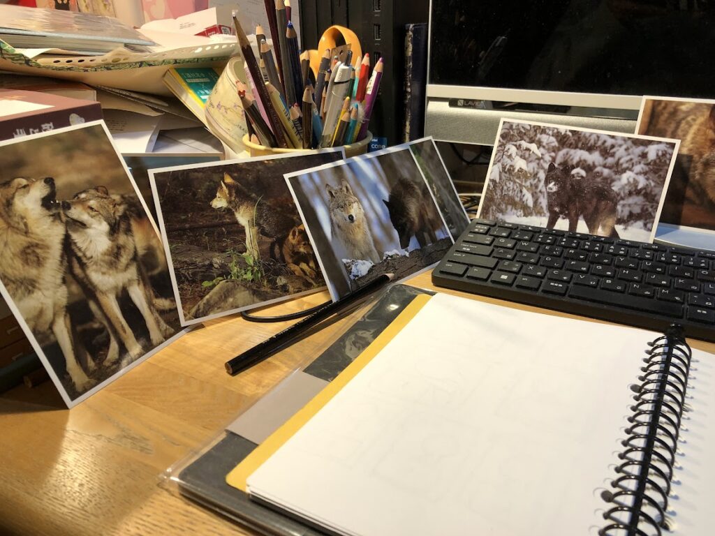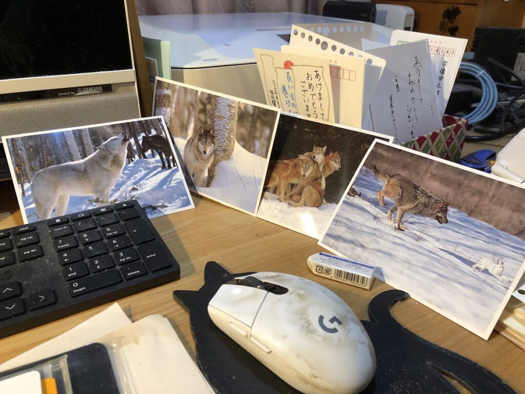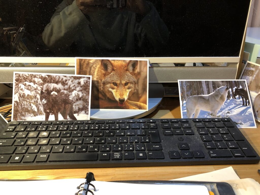 ちなみに、「アフリカ」は侵略や征服、民族や革命の問題も満載(あ、ついでに人生論も)、「コロセウム」はオオカミだの猫だの、動物がよく登場します。猫の絵はほとんどないのですが、オオカミの絵はいっぱいあって、何を隠そう、親友がアメリカ旅行のお土産に昔くれた、オオカミの絵葉書を全面的に参考にしました(笑)。それもお見せしておきますね。やだもう、またしても何だか、画像だらけになっちゃった。