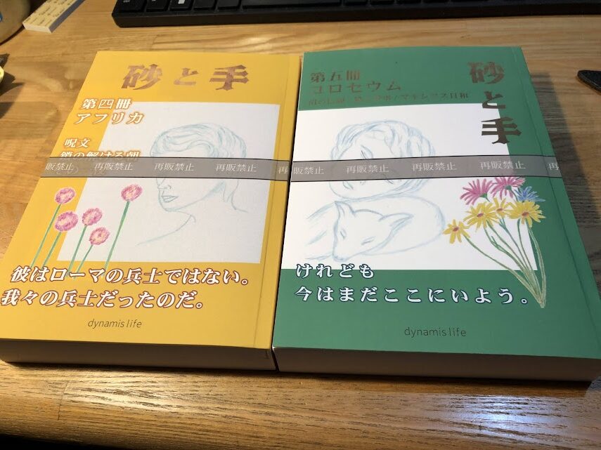 「砂と手」の新刊二つ、Amazonからの試供品、今回はばっちり大丈夫でした。下の方の宣伝ページにもありますので、よろしかったらご注文下さい。