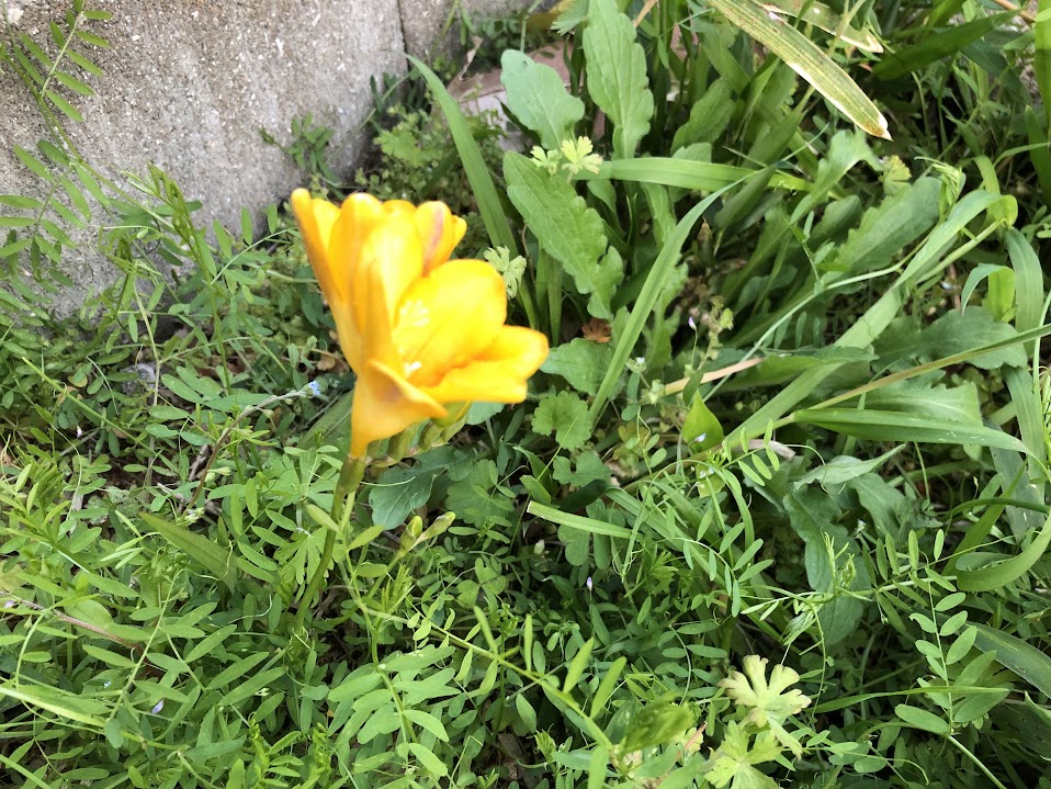 ほったらかしっぱなしの庭には、いつの間にかフリージアが咲き始め、ユキヤナギも勢いを増し、バラとユリは勝手に伸びまくり、奥庭と隣接する空き地の斜面には、本来雑草の青い花が、なぜか満開のお花畑になっている。春って一番好きな季節だし、にぎにぎしいのはいいけれど、何だかもう、ついて行けないよなあ。うれしいけれど疲れるよー。