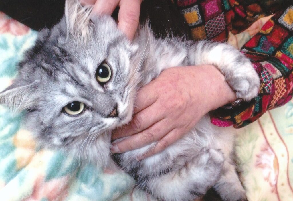 いなかのいえに、すんでいた、ふかふかの、しろのおおい、みけねこの、