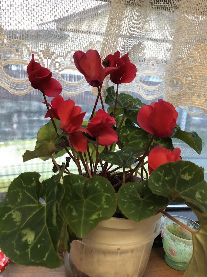 それでも否応なしに春は来て、特にキッチンの窓辺のシクラメンの鉢植えは、一度や二度枯れかけて消えたようなこともあったのに、またもや見事に復活して、いっぱいの花を咲かせている。何の世話もしていないのに恐いよ。もういただいてから十六年にもなるんだぜ。