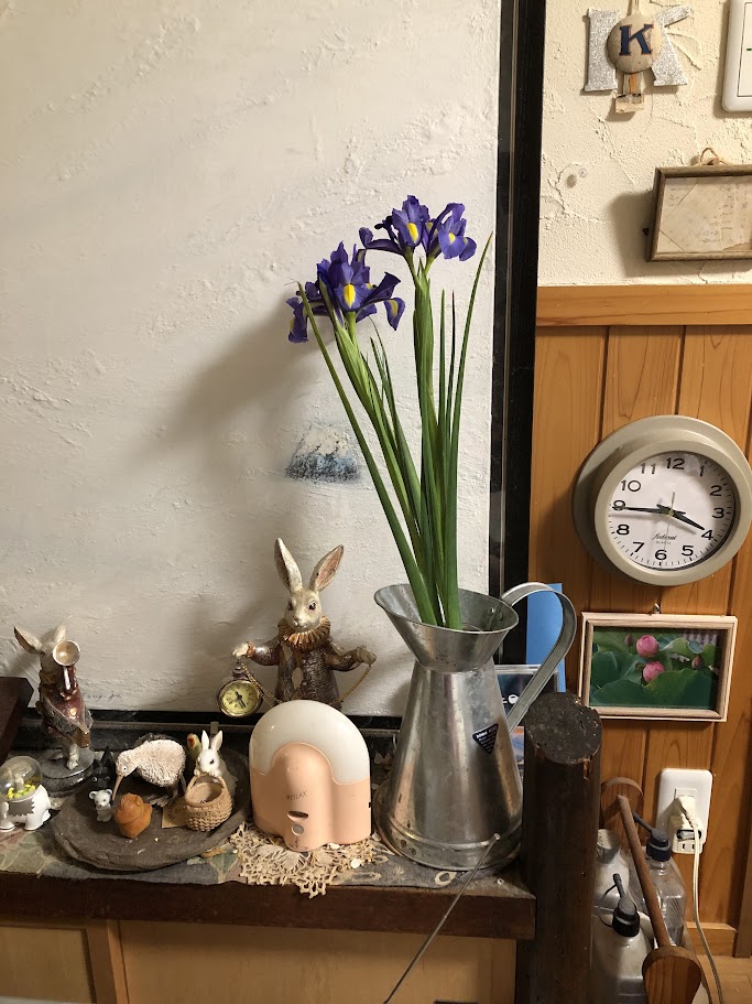 いやーもう、まだあるんですけど、今日はここまで。地域の方との読書会でいただいた、アイリスの花が、今夜はきりっと、きれいで、目も心も洗われるようなのが、せめてもかしらん。