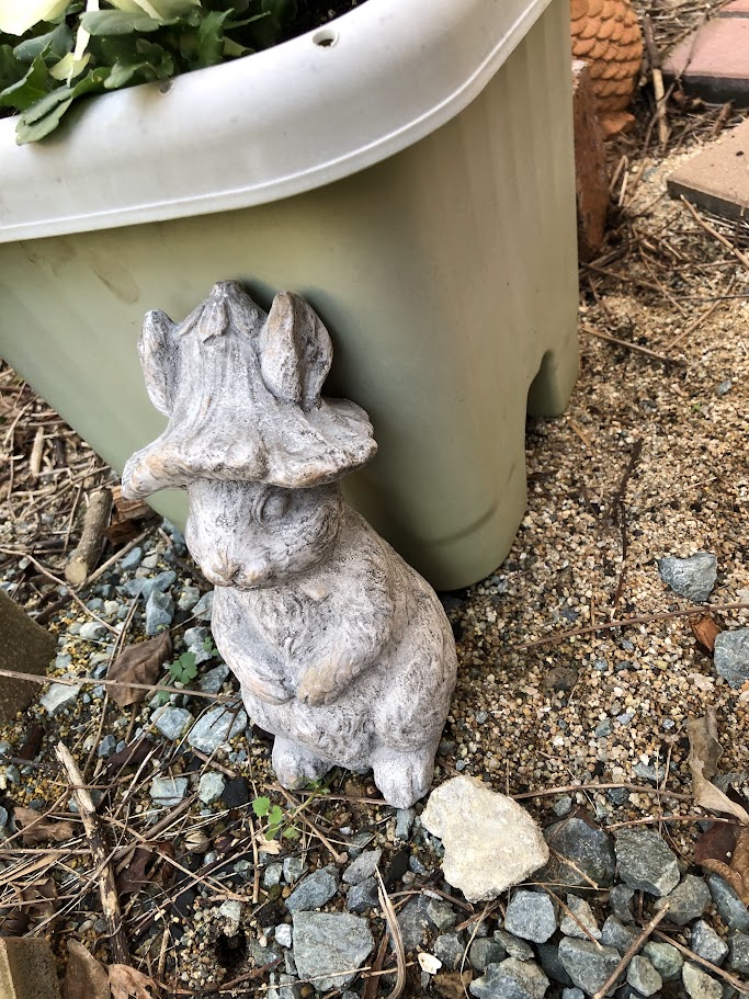 いしでできた、うさぎのおきものをみつけて、