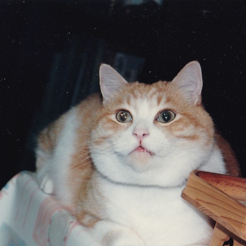 まくらのうえに、おおきなおれんじいろの、きじねこが、ねていました。