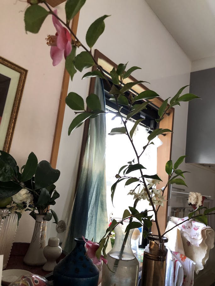 椿を切って飾ってみました。つぼみもちゃんと室内で開いて、偉い(笑)。