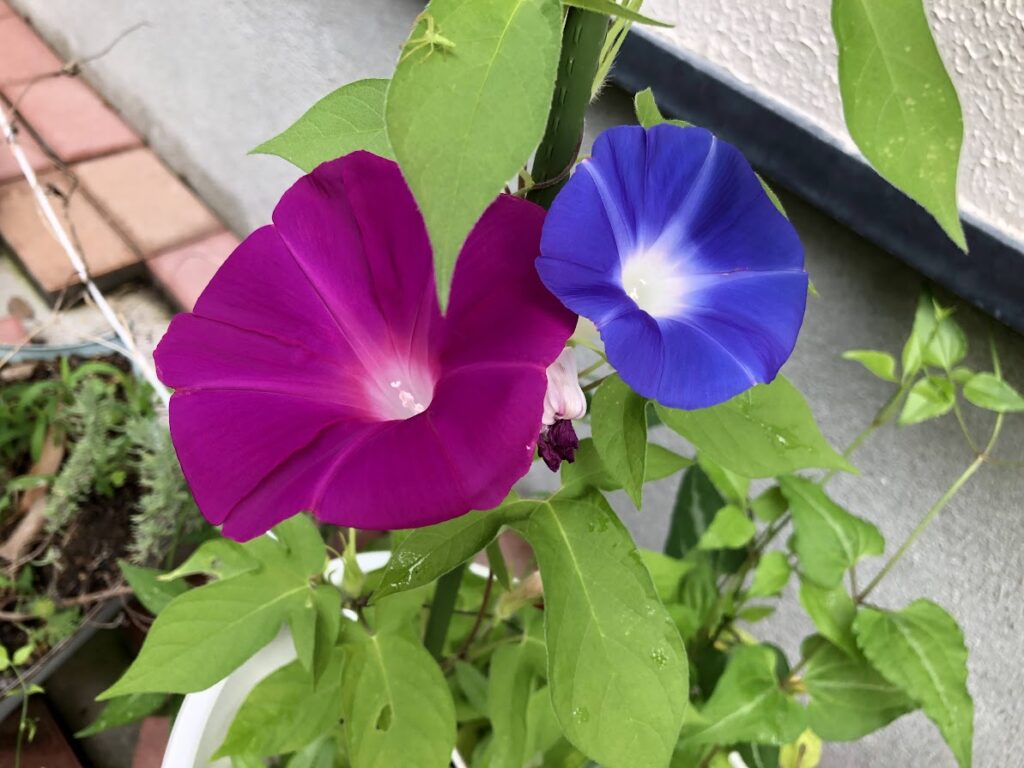 世の中の動きも読んだ本の感想もいろいろあるが、また明日にでも。今朝は初めて朝顔が赤青二つ並んで咲いて見せていた。