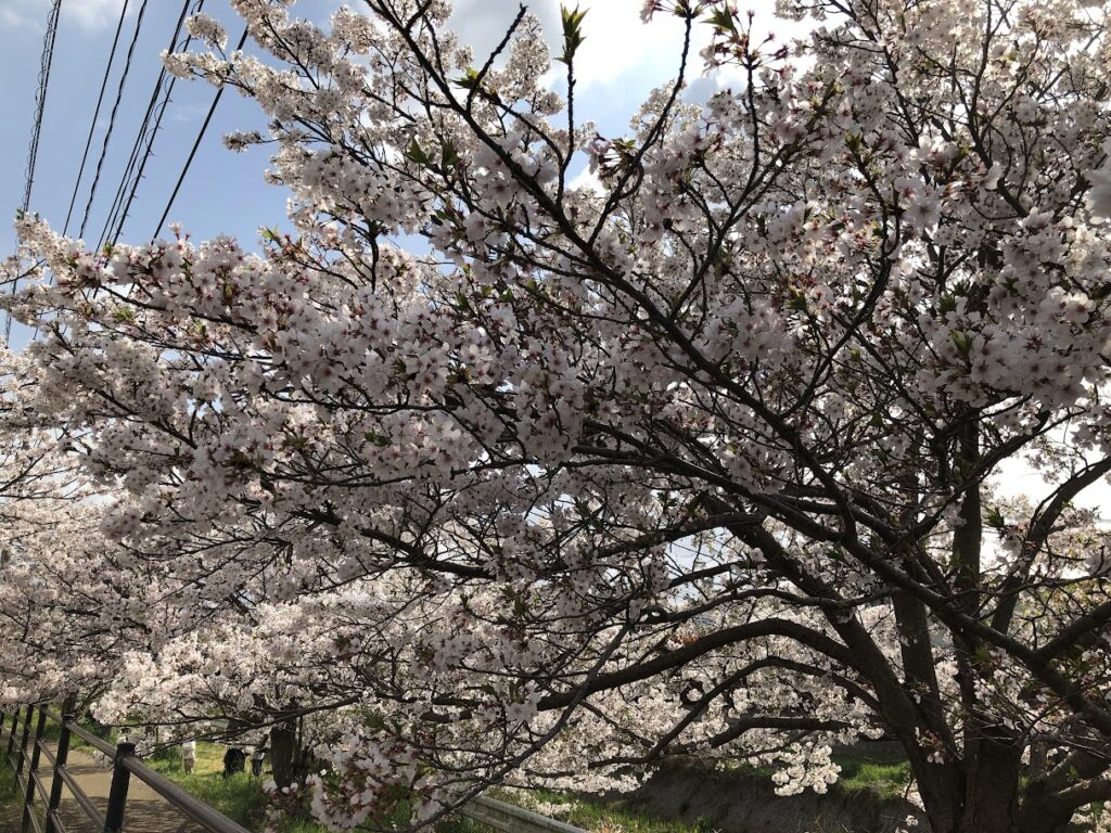 毎年みごとに咲くスーパー裏の川岸の桜を、昨日、雨の中で車を走らせながら見て堪能したが、カメラを持ってなかったので、今日あらためて出かけてみた。スーパーの広場ではお祭りが行われてにぎわっていた。お天気もよく、桜はまだまだ満開だったが、あまりまだ、この場所に気づいている人は少ないようで、ゆったりのんびり散策できた。