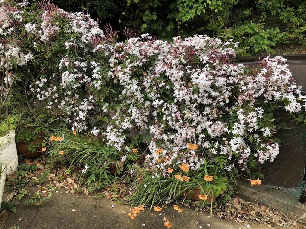 庭では、いちごが実をつけはじめ、虫と競争でもぎっては食べている。バラのつぼみも、あちこちに見え始め、あらゆる花が満開だ。ジャスミンの香りで庭全体がむせかえるようだ。だが、雑草も生い茂っているから、まったくきれいに見えないのよね(笑)。ガザニアも花が咲きまくってるが、通路にはみ出して足をとられそうで、早く移し植えるかどうかしないと、危なくってしかたがない。