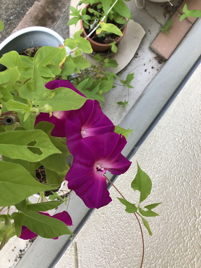 赤紫の朝顔は、今朝はますますたおやかに咲き乱れていた。バラの鉢のいくつかに、やっと少しだけ栄養剤の入った水をかけてやった。猫のカツジの具合はあまりよくない。顔も少しやつれて来て、いつものまんまるい顔ではなくなって来た。彼の世話をしてくれたことのある人が今夜来てくれるかもしれないので、少しは家を片づけておくかな。