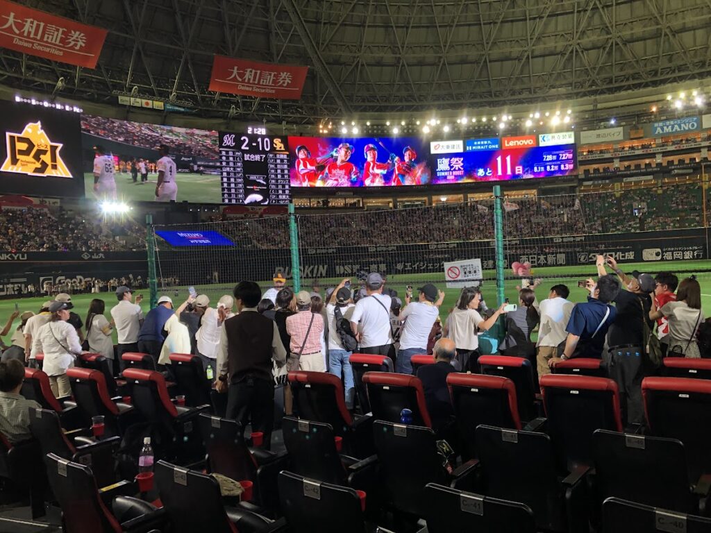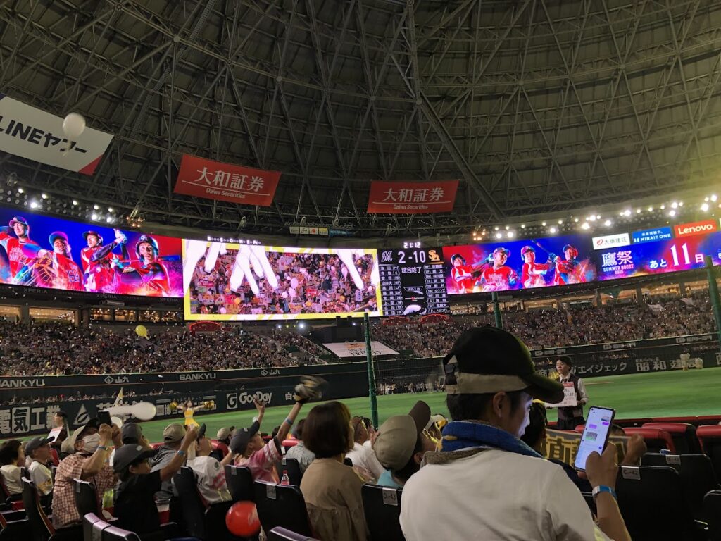 私がドームに観戦に行ったのは、もうかなり前で、サファテや五十嵐が投げて、上林や柳田が守ったり打ったりしていました。だからもう、よっぽど昔です(笑)。その時は外野の一塁側で、選手たちを見下ろす位置でした。